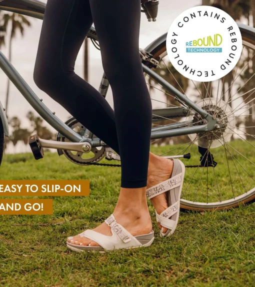 Ready for action! Deserae is a sporty slip-on sandal with all the comfort features you’ve come to expect from a Baretraps sandal. Featuring a hook and loop closure, a hidden wedge, lightweight TPR outsole and our patented Rebound Technology.
